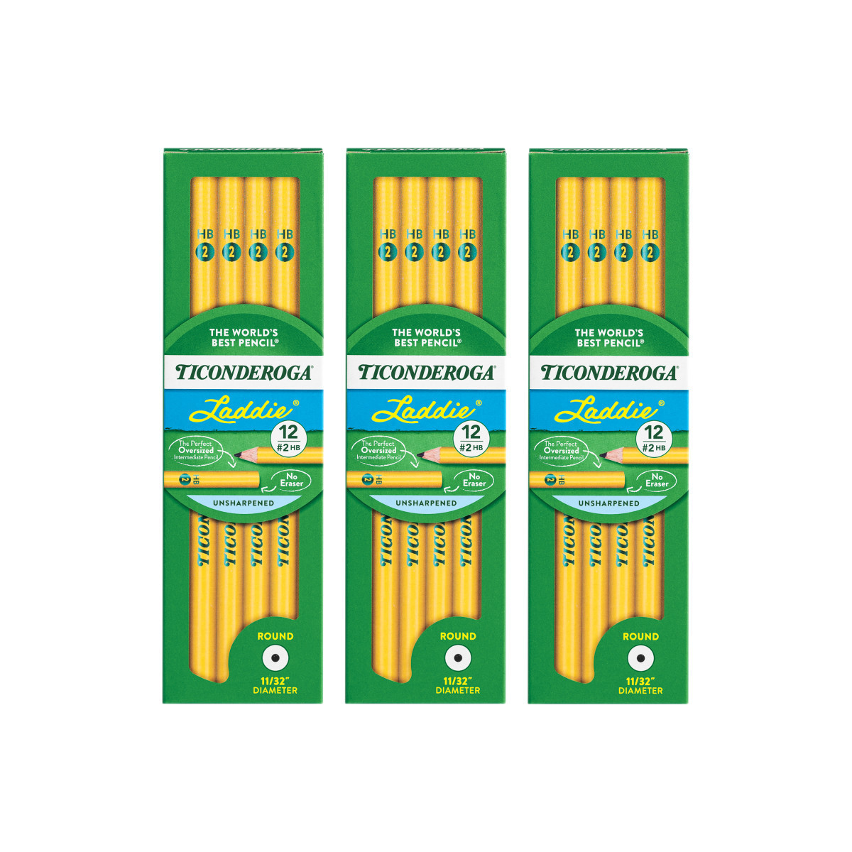 Ticonderoga® Laddie® Wood-Cased Pencils, NUMBER2 HB Soft, Yellow, 12 Per Pack, 3 Packs