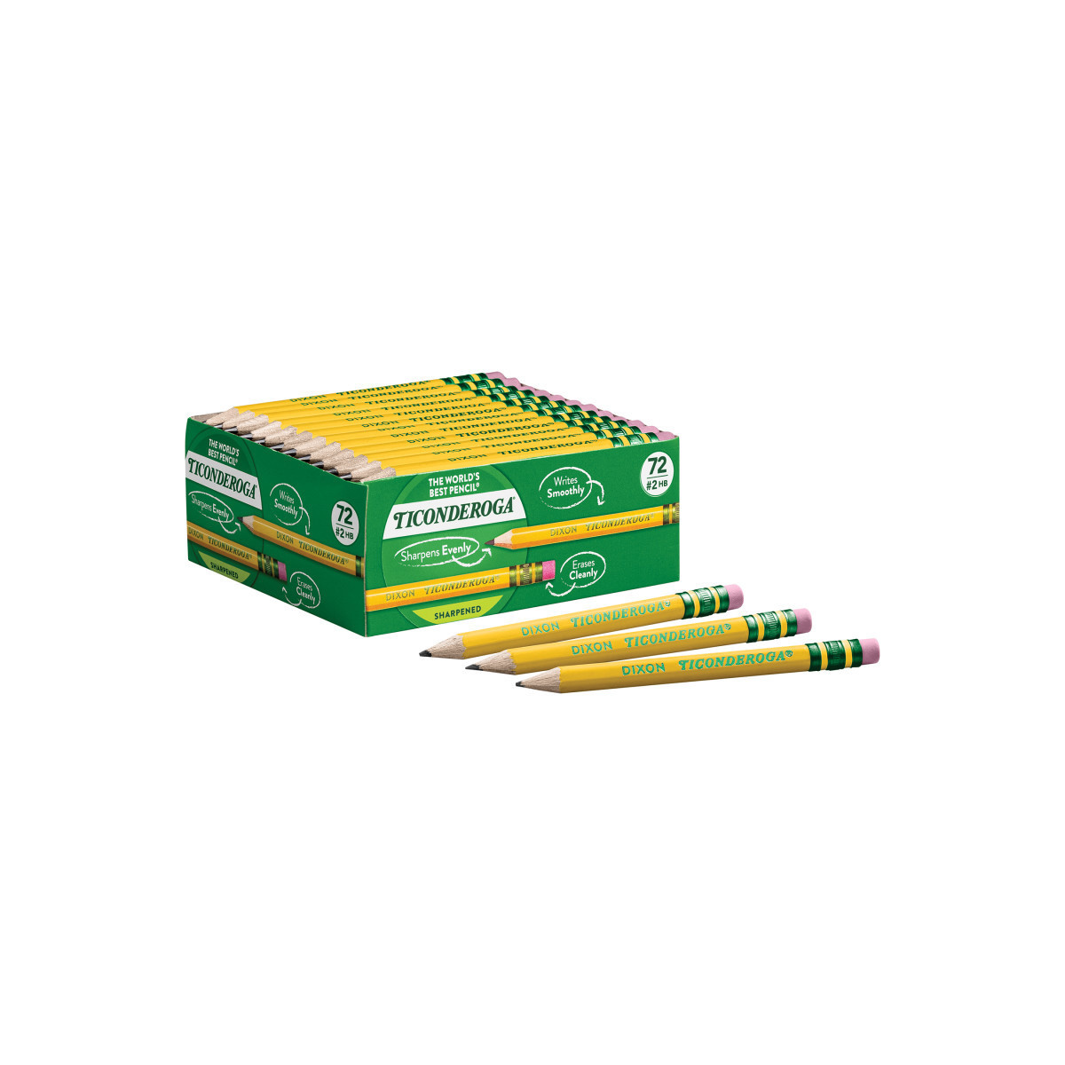 The World's Best Pencil just got shorter! Ticonderoga Golf Pencils can be used for survey forms, lottery kiosks, church pews, compasses and more. Real wood #2 pencils are 3" in length and pre-sharpened. Top quality, latex-free eraser provides easy, clean corrections. PMA certified non-toxic. Box of 72.