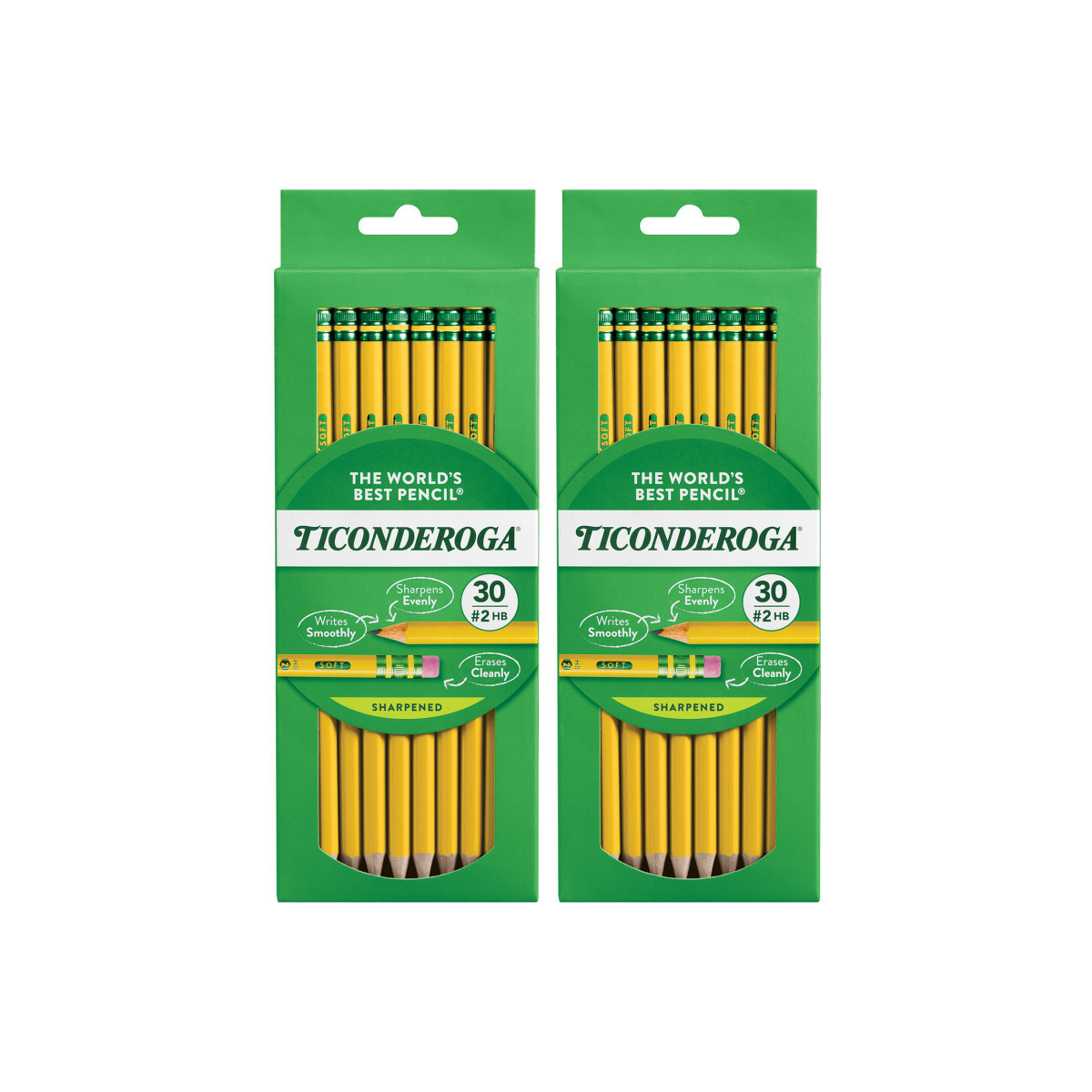 Ticonderoga® No. 2 Pencils, Pre-Sharpened, 30 Per Pack, 2 Packs