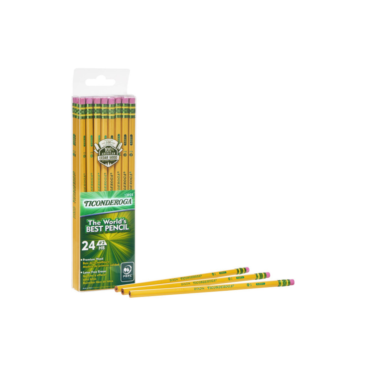 Ticonderoga® has a tradition of fine quality writing instruments in the US for over 100 years. The exclusive graphite core features a proprietary formula focusing on graphite mined from carefully controlled sources to deliver extra smooth performance. Top-quality latex-free erasers remove marks completely without smudging. Premium wood harvested from responsibly managed sources provides smooth, even sharpening with minimal breakage. Teachers prefer Ticonderoga® for its dependability and craftsmanship. When only the best will do, choose Ticonderoga® brand pencils. Each pack includes 24 pencils.