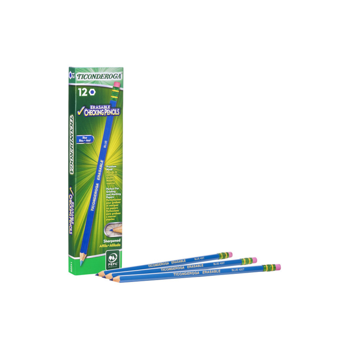 Ticonderoga Erasable Colored Checking Pencils have brilliant, non-fading, erasable colors. Use them for checking, map coloring, marking on blueprints and proposals, and editing papers. Ideal for teachers, artists, accountants and engineers, Ticonderoga Erasable Colored Checking Pencils are PMA certified non-toxic, sharpened, and ready to use. Each pack includes 12 pencils.