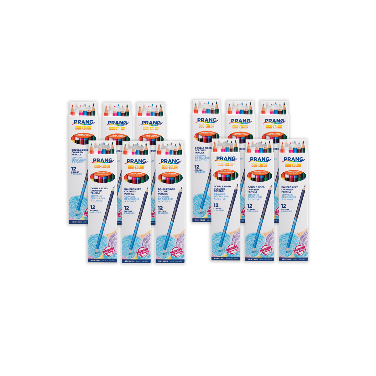 6 per set, sold as 12 sets, 72 duo colored pencils total