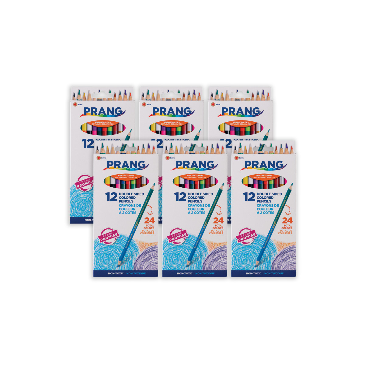 Pre-sharpened colored pencils are ready for immediate use. Features two colors per pencil with a smooth 3mm core for colorful and comfortable creativity. Wood casing sharpens easily for extended use. Each set includes 12 colored pencils containing 24 assorted colors. Sold as 6 sets for a total of 72 pencils.