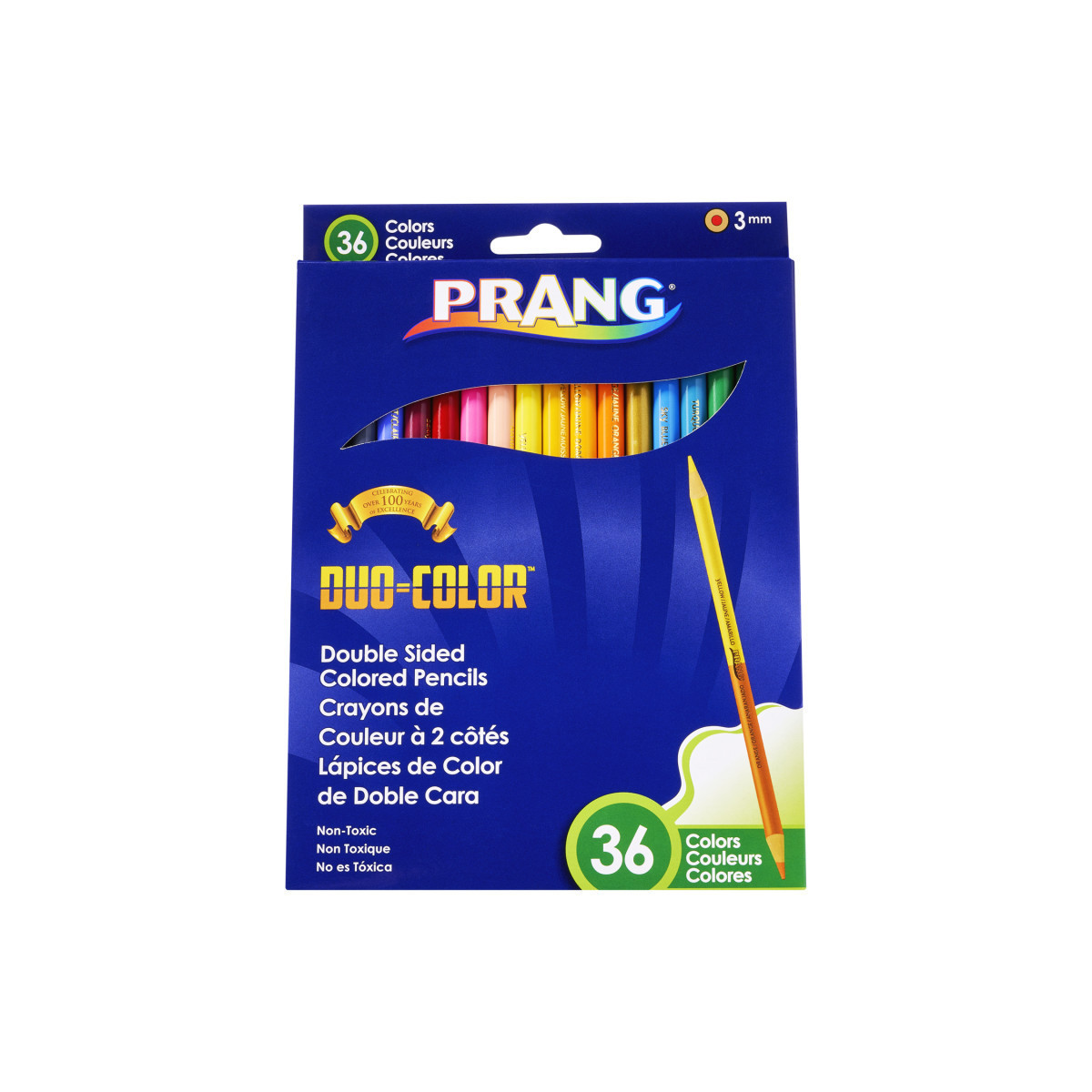 Pre-sharpened colored pencils are ready for immediate use. Features two colors per pencil with a smooth 3mm core for colorful and comfortable creativity. Wood casing sharpens easily for extended use. Each set includes 18 colored pencils containing 36 assorted colors.