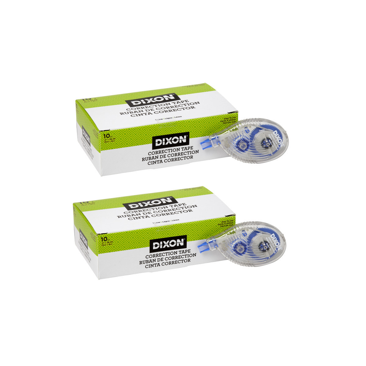 Dixon® Correction Tape dispenser features a flexible tip for a smooth application and a contoured design for a comfortable hold. Application is fast with no drying time. Side application improves visibility. Dispenser contains .20" width x 26.2 ft. tape. Each pack includes 10 dispensers. Sold as 2 packs for a total of 20 dispensers.
