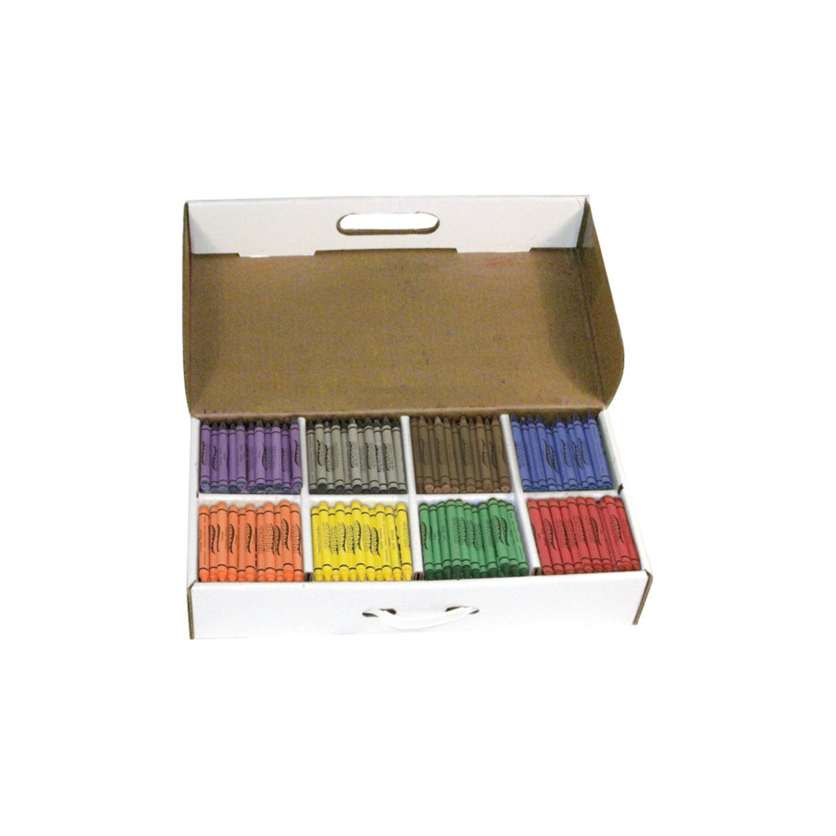 Prang crayons are made from a unique soy bean formulation. These crayons are made from 100% renewable resources and do not include paraffin wax. This formula makes our crayons brighter and smoother than ordinary wax crayons. All prang crayons are AP certified non-toxic. Each masterpack includes 400 crayons, 50 each of 8 colors.