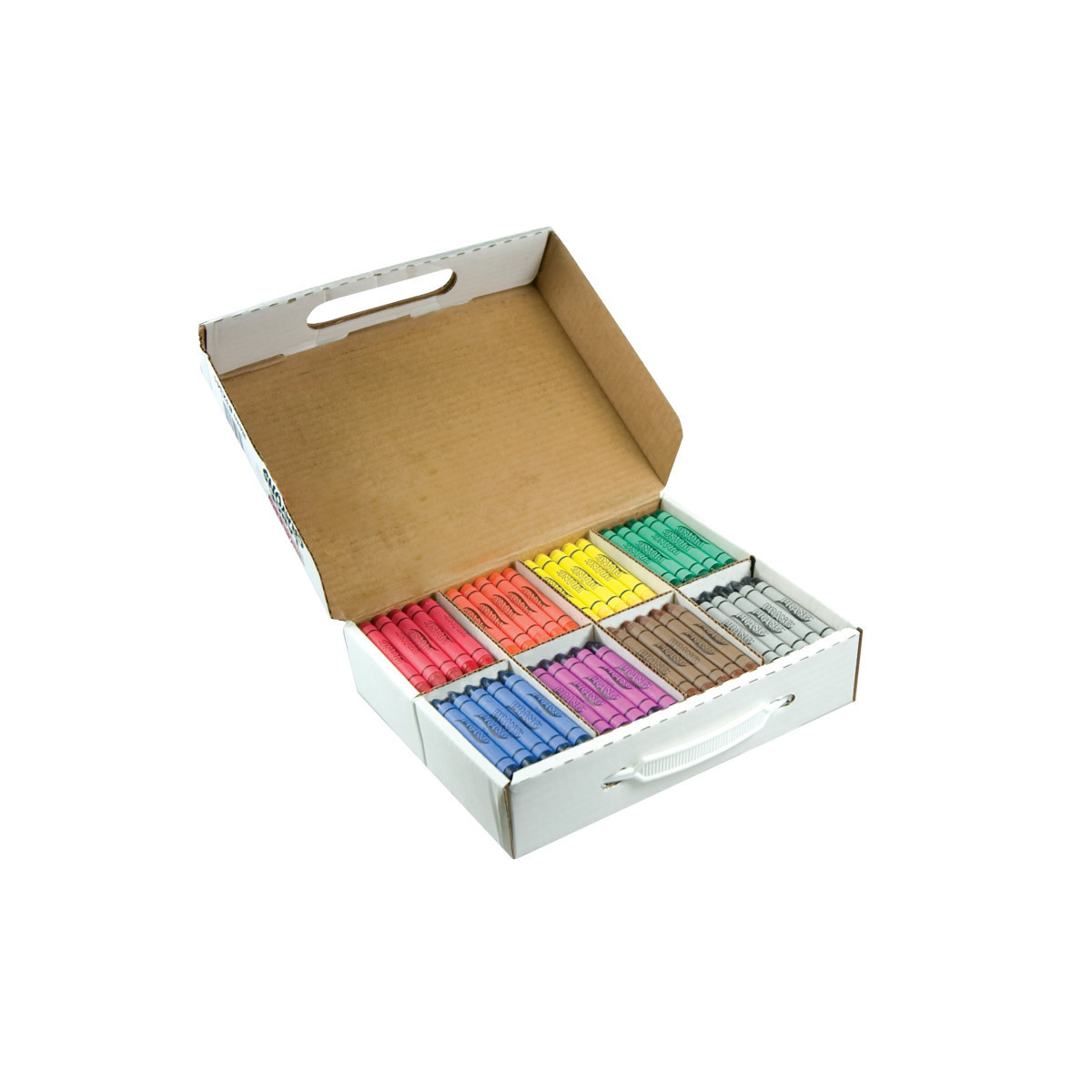 Prang crayons are made from a unique soy bean formulation. These crayons are made from 100% renewable resources and do not include paraffin wax. This formula makes our crayons brighter and smoother than ordinary wax crayons. All prang crayons are AP certified non-toxic. Each masterpack includes 200 crayons, 25 each of 8 colors.