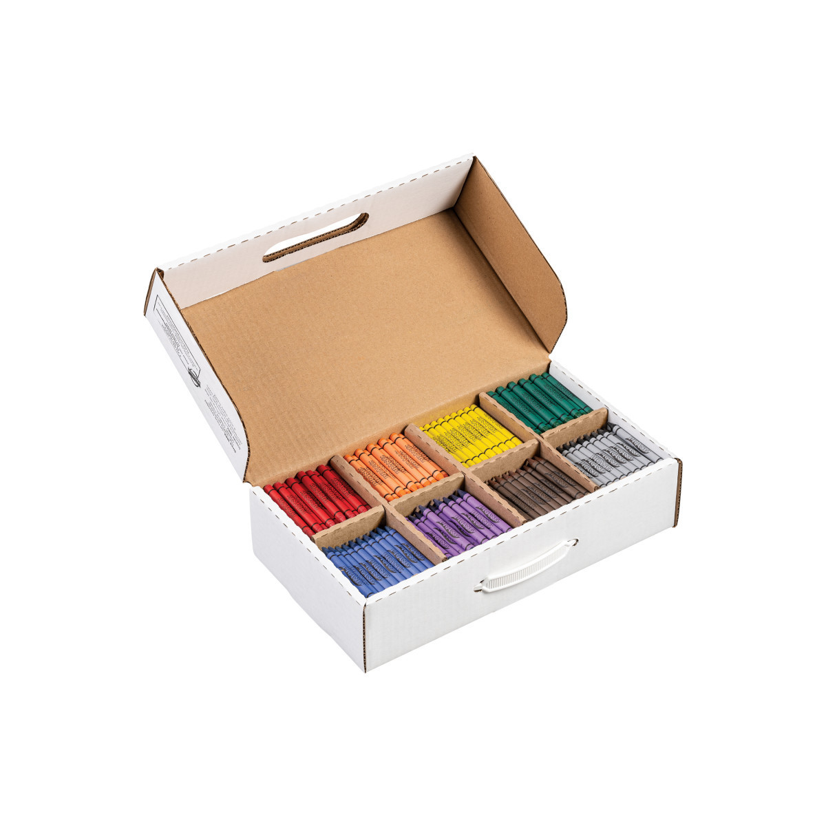Prang crayons are made from a unique soy bean formulation. These crayons are made from 100% renewable resources and do not include paraffin wax. This formula makes our crayons brighter and smoother than ordinary wax crayons. All prang crayons are AP certified non-toxic. Each masterpack includes 800 crayons, 100 each of 8 colors.