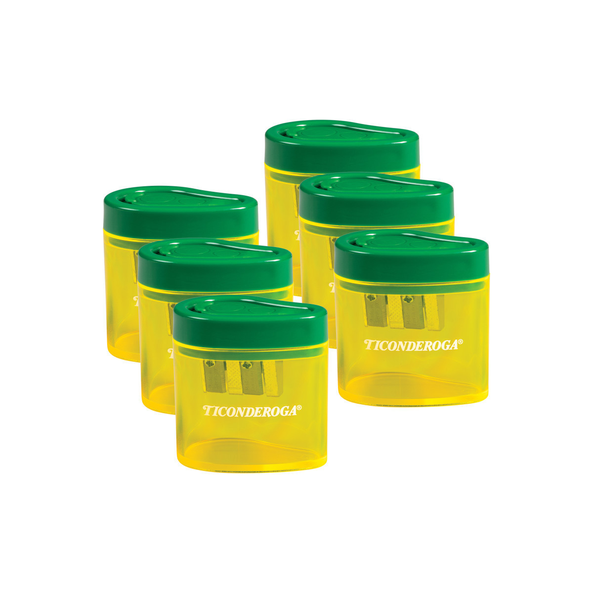 Ticonderoga® Two Hole Pencil Sharpener, Green/Yellow, Pack of 6
