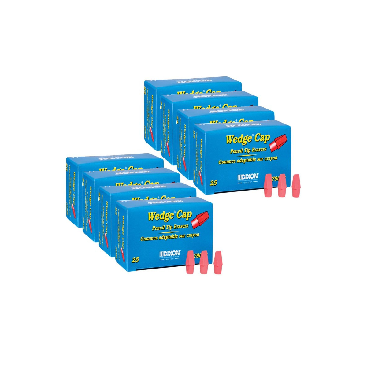 Ensure that you always have an eraser handy with the Dixon Wedge Eraser. It is an ideal solution to worn-out erasers or pencils that do not have an integrated eraser. Non-toxic in nature, it is safe for use by children. Made from latex-free material, this pink eraser helps you maintain neatness as it leaves behind very little residue and dust. It also removes extra lines and strokes efficiently, without smearing the text. Each pack includes 25 erasers. Sold as 8 packs for a total of 200 erasers.