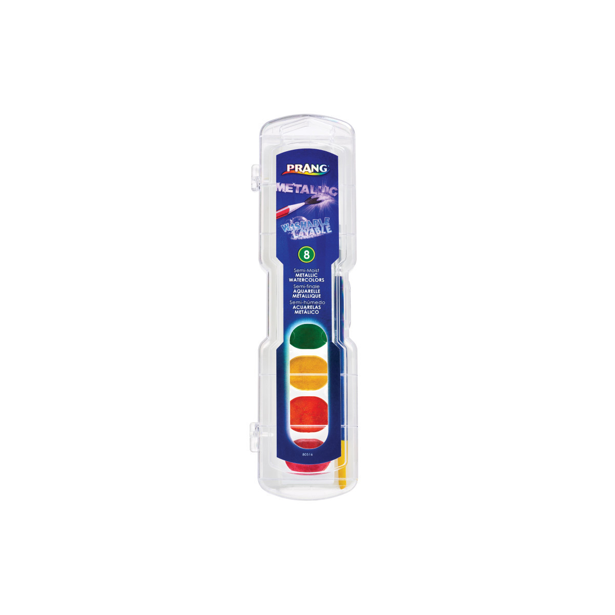 Make your dreams come alive with the authentic semi-moist watercolors since 1856, with intense wax free pigments you will experience a smooth laydown of brilliant colors with limitless textures. It is even easier to ignite your passion with the easy snap-in refill pans to match your preferred colors more economically. This watercolor set includes a strong case with built-in mixing areas along with a top quality paintbrush. No wonder it is the most trusted brand by teachers nationwide. AP certified non-toxic. Metallic Colors included: Blue, Gold, Green, Magenta, Purple, Red, Silver, Yellow.