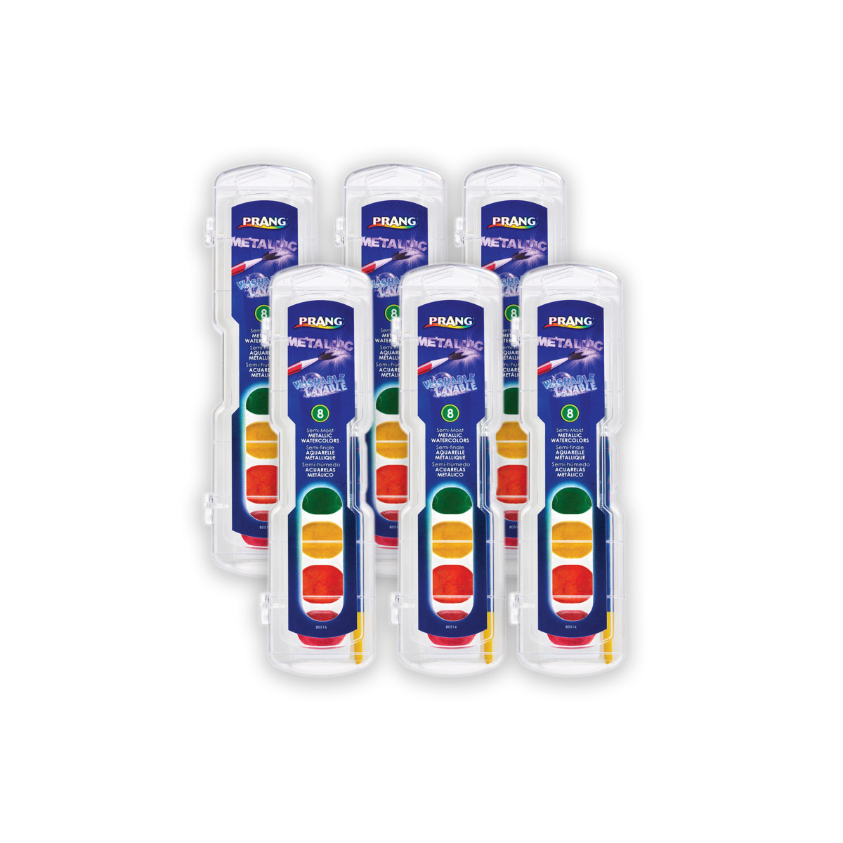Make your dreams come alive with the authentic semi-moist watercolors since 1856, with intense wax free pigments you will experience a smooth laydown of brilliant colors with limitless textures. It is even easier to ignite your passion with the easy snap-in refill pans to match your preferred colors more economically. This watercolor set includes a strong case with built-in mixing areas along with a top quality paintbrush. No wonder it is the most trusted brand by teachers nationwide. AP certified non-toxic. Metallic Colors included: Blue, Gold, Green, Magenta, Purple, Red, Silver, Yellow. Sold as a pack of 6 watercolors sets.