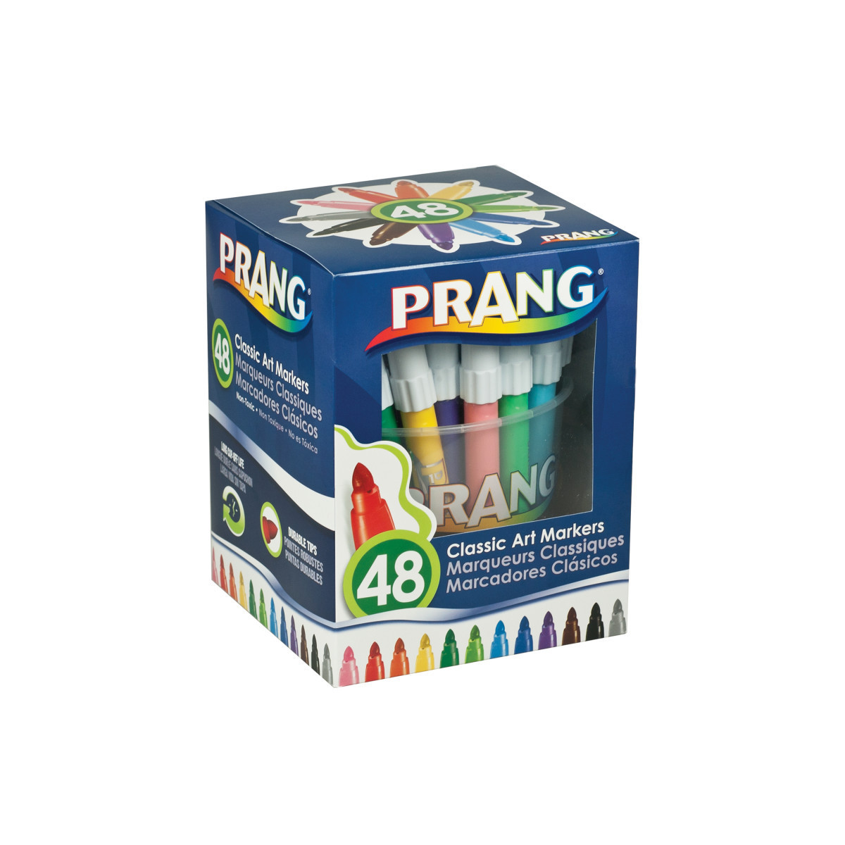 Popular colors with a durable bullet tip for fine and broad lines. Inks won't bleed through and won't dry out even if the cap is left off for over 24 hours! Ventilated cap ensures safety. Convenient 48 count classroom pack includes 4 each of 12 popular colors. AP certified non-toxic. Conforms to ASTM standards.