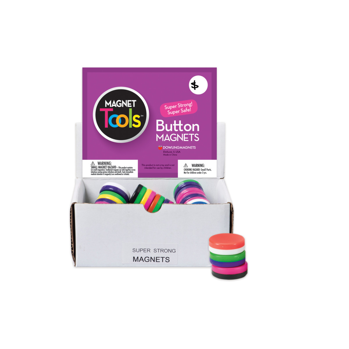 Bright as a button! Vibrant bicolor design and super strong holding power to organize and brighten up your classroom. Great for whiteboards, filing cabinets, fridges, and more. Successful register display! Plastic-encased, ceramic magnets measure 1.13"D x 0.50"T each. Each set includes 40 magnets in a display box.