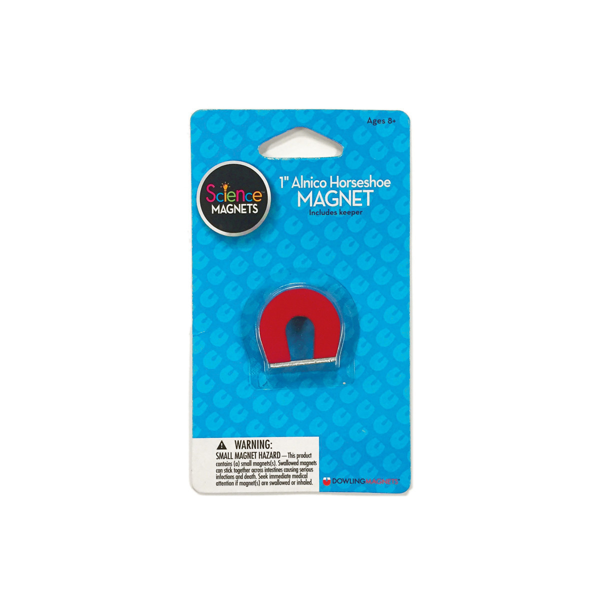 Bend a bar magnet into a "U" shape, and what do you get? A stronger magnet! Why? Because the poles are side by side. Alnico magnets are strong and durable. Lift four pounds with this 1" tall alnico horseshoe magnet! Includes keeper. For ages 8+.