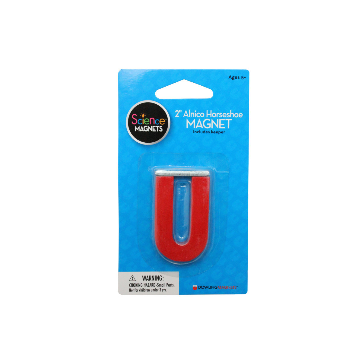 Bend a bar magnet into a "U" shape, and what do you get? A stronger magnet! Why? Because the poles are side by side. Alnico versions are strong and durable. Includes 2" tall alnico horseshoe magnet and keeper. For ages 8+.