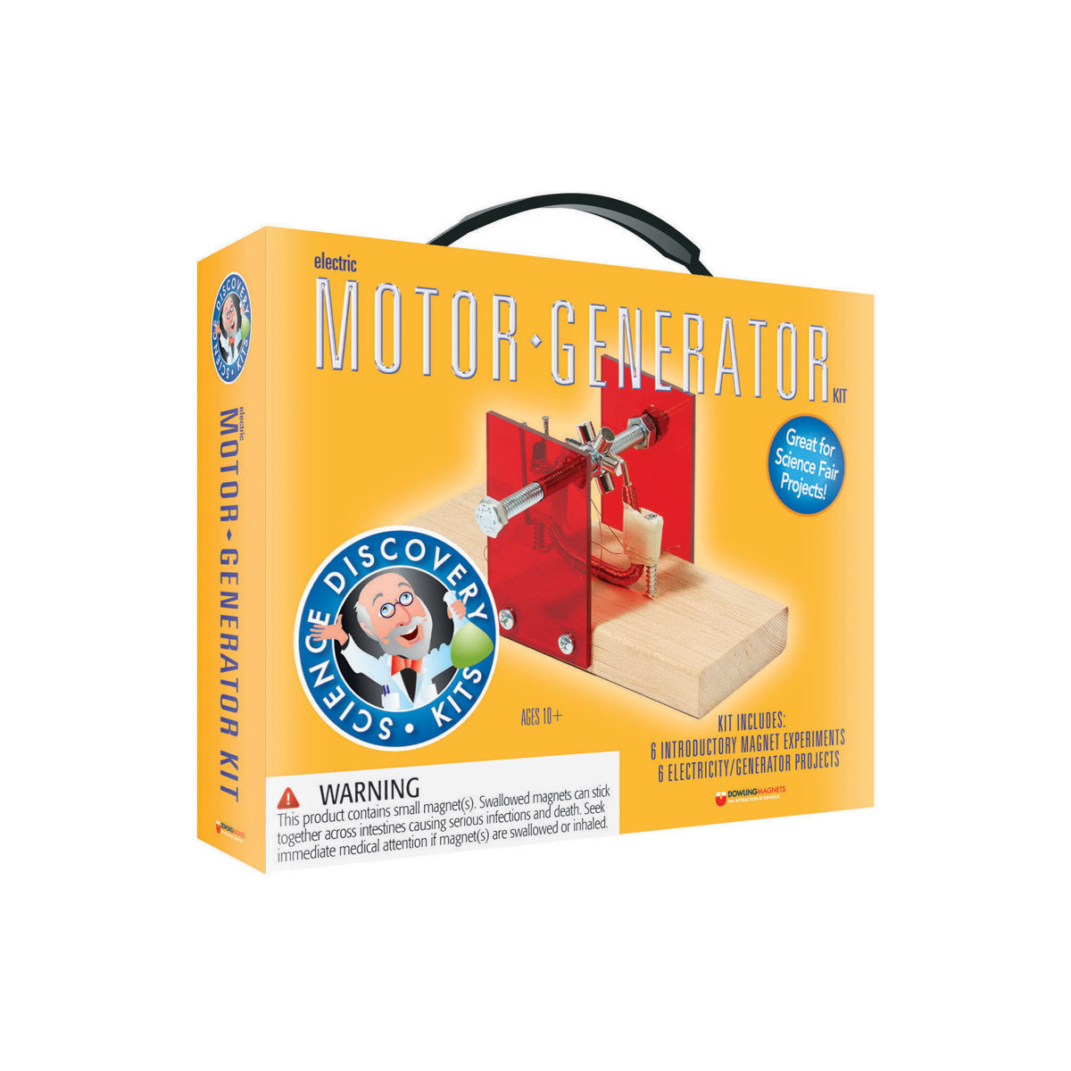 Includes 5 projects: Detect Electrical Flow, Simple Generator & Motor Pair, Different Kind of Generator, Faster Motor, Motor with Speed Control, and Generator that Powers a Light Bulb.
