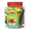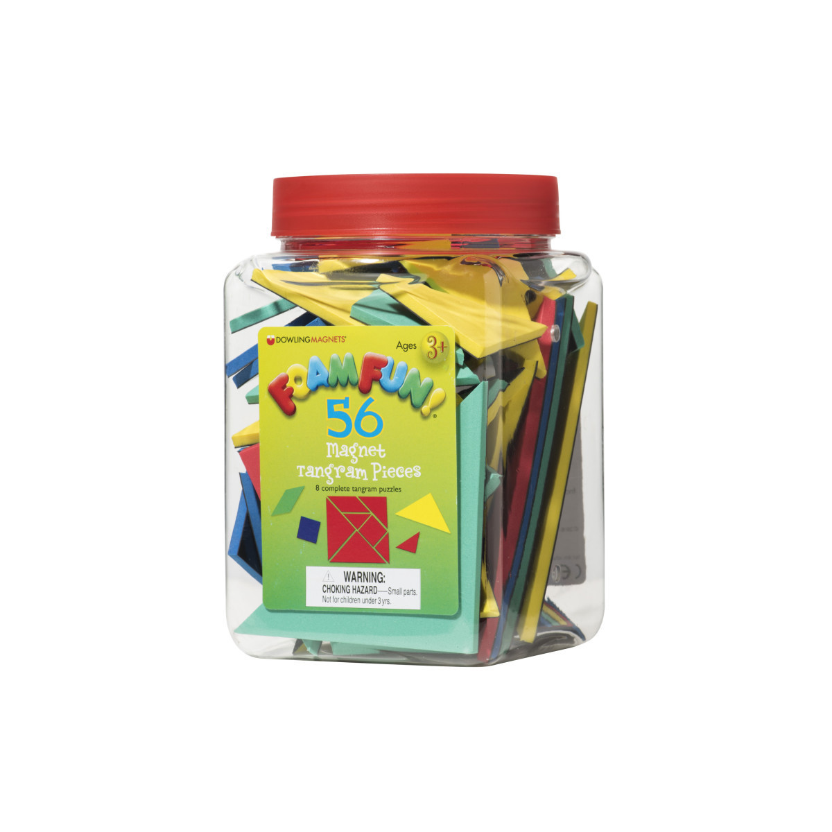 Magnet Tangrams are a fun way for children to develop important math, problem solving and thinking skills! Encourage children to create their own patterns and pictures using the seven geometrical Tangram magnet shapes. This set includes 8 complete Tangrams; 56 pieces total. Packed in a handy storage bucket, along with a colorful booklet full of fun activities.