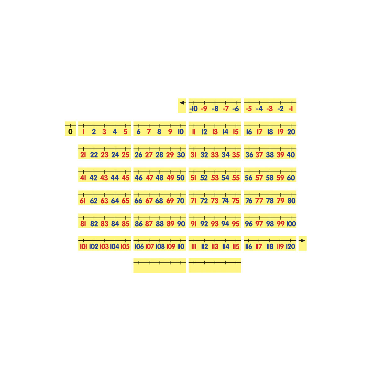 • Extends from -10 to 120 to reinforce numbers, counting, cardinality, and operations