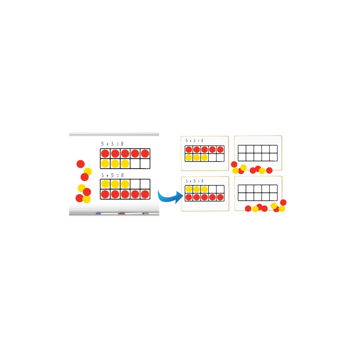 Includes 2 large demo frames 4 student frames and 60 magnetic two-color counters (double sided red/yellow)