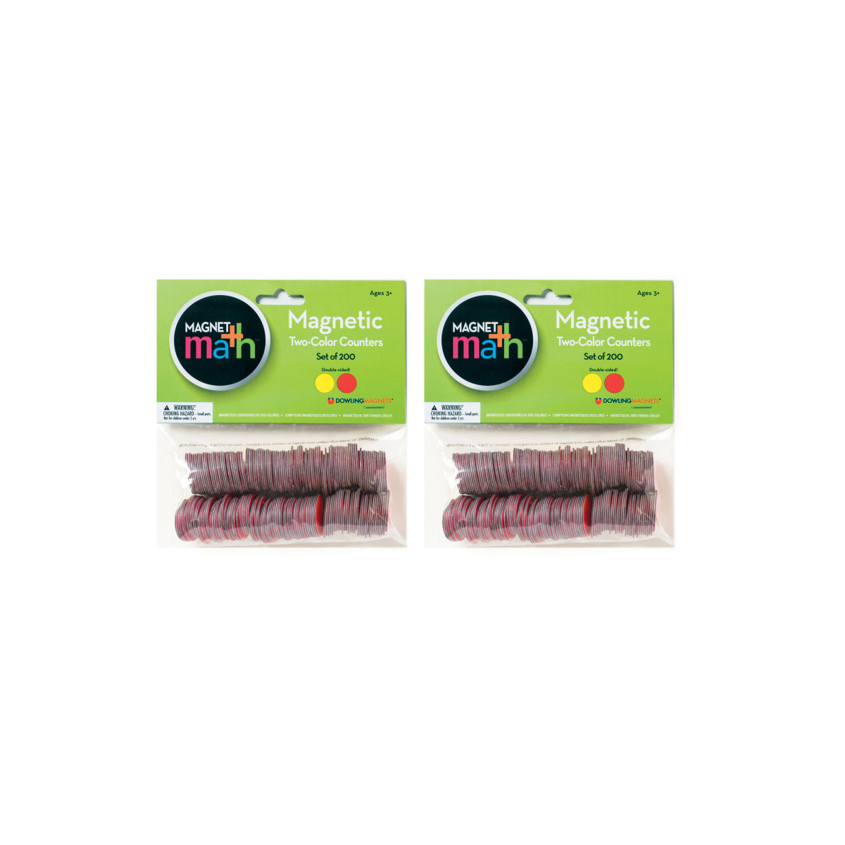 Double-sided, just flip them over! Magnetic manipulatives are so versatile. Great for teaching counting and cardinality, operations, base-ten concepts and more. Features flexible magnet material and red/yellow colors to match counters in the most popular math programs. Measure 1" each. Each pack includes 200 counters. Sold as 2 packs for a total of 400 counters.