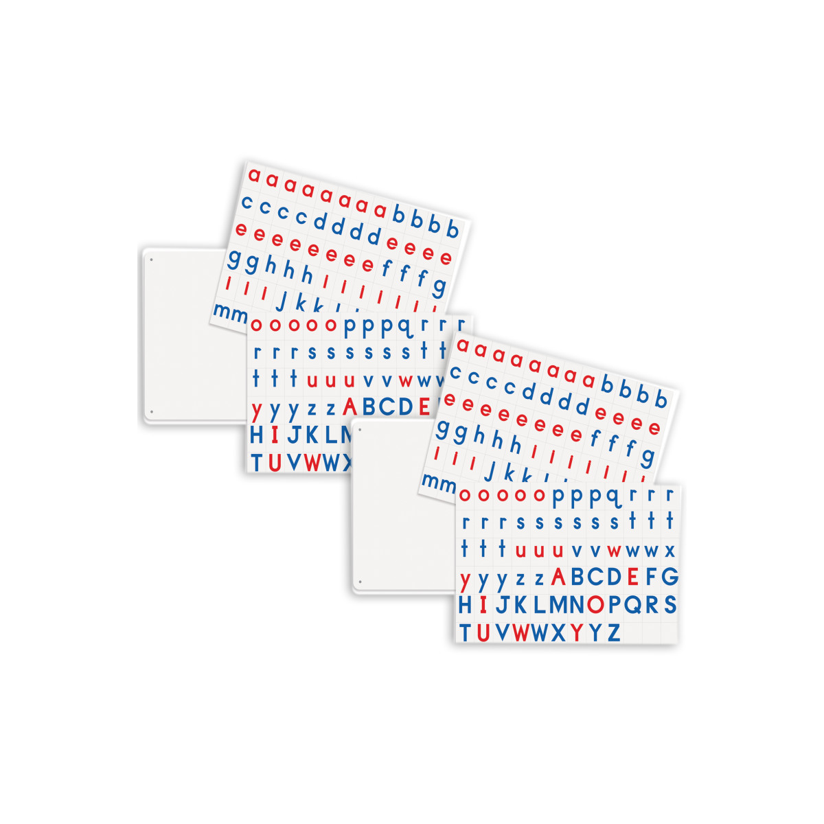 - Sold as 2 sets, each set includes 144 uppercase and lowercase tiles and a dry-erase board