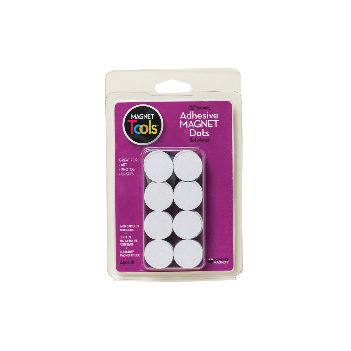 Includes 100 Magnetic Dots – Each measures 0.75" in diameter x 0.04" thick.