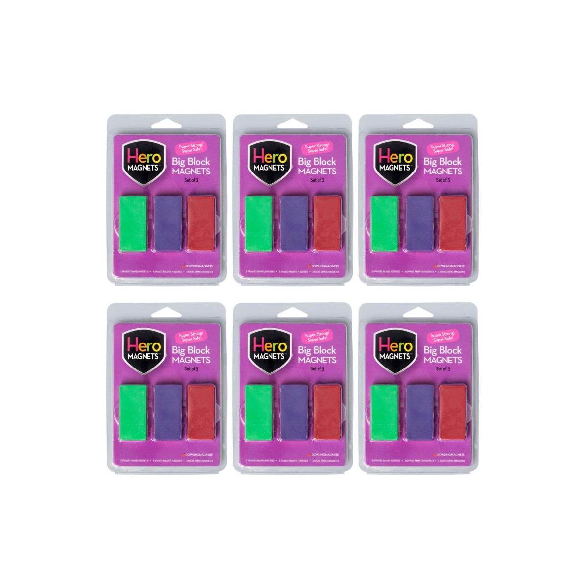 In search of safe magnets to use in the classroom or in a children's environment? Hero Magnets to the rescue! Chunky size with magnets completely encased in plastic. Strong display magnets help you get, and stay, organized. Great for whiteboards, filing cabinets, fridges, and more. Big Blocks measure 2"L x 1"W x 0.50"T and hold 20 pieces of paper. Each set includes 3 bi-color magnets – flip them over to see a different bright color! Sold as 6 sets for a total of 18 magnets.