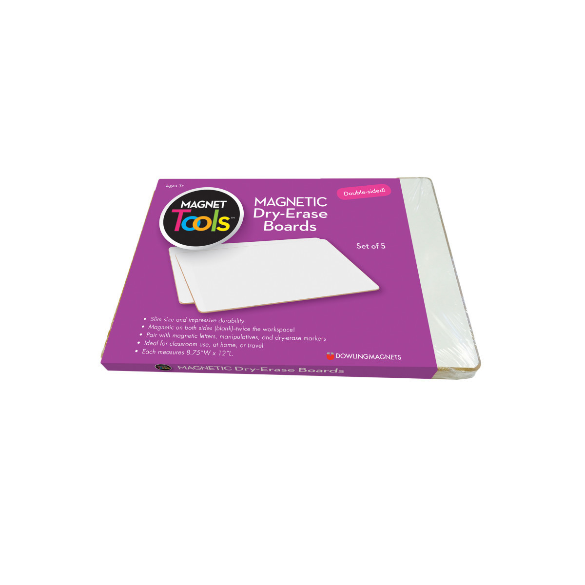 Twice the workspace — double-sided! Slim size and impressive durability — ideal for student use. Our double-sided magnetic receptive boards feature dry-erase wipe-on/off surface and are the ideal eco-friendly alternative to notebook paper. Great for classroom centers, home schooling and homework practice. Pair with magnetic manipulatives and dry-erase markers (sold separately) in classroom centers, at home or for travel. Magnetic-receptive board measures 12"L x 8.75"W. Each set includes 5 boards.