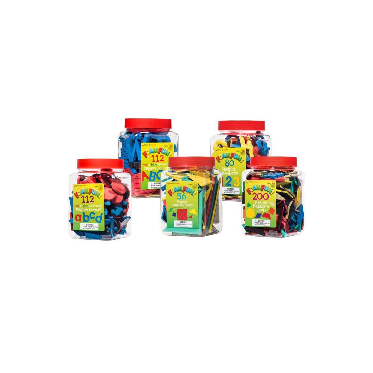 The Foam Fun Magnets Bundle is a comprehensive kit designed to engage young minds in hands-on learning and exploration. This bundle includes four sets of versatile magnetic foam shapes, letters, numbers, and tangrams, providing endless opportunities for creative play and skill development. The Pattern Block Magnets set features 200 magnetic pieces in six shapes and colors, perfect for identifying, describing, and comparing 2-D shapes. The Number Magnets set includes 62 numbers and 18 operational signs, backed with flexible magnet material for a strong hold on any magnetic surface. Our Magnet Tangrams set of 56 pieces, 8 complete tangrams, encourages children to develop important math, problem-solving, and thinking skills through the creation of their own patterns and pictures using seven geometrical Tangram shapes. Lastly, the Foam Fun Magnet Letters Red & Blue Bundle features uppercase and lowercase letters, color-coded to help kids differentiate vowels from consonants, facilitating phonics and word-building activities. With a total of 224 letters and a variety of shapes and numbers, this bundle is packed with fun and educational value, providing hours of interactive learning for children at home or in the classroom. The Foam Fun Magnets Bundle is the ultimate educational resource, fostering creativity, critical thinking, and literacy and numeracy skills in children of all ages.