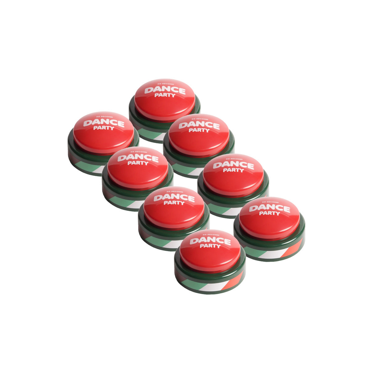 The 30 Second Dance Party Button Holiday Edition is the perfect way to add a festive burst of joy to any holiday gathering or celebration. With a single press, it plays 30 seconds of cheerful, holiday-themed music, transforming everyday moments into spontaneous celebrations. Whether in the classroom, office, or at home, this button features five jolly tracks that encourage movement, laughter, and a break from the holiday hustle. Its glowing BloGlo technology enhances the fun with a warm, festive glow, making each dance party even more magical. Ideal for lifting spirits, spreading cheer, and creating memorable holiday moments, the Holiday Edition is a must-have for adding seasonal fun to any setting. Pack of 8.