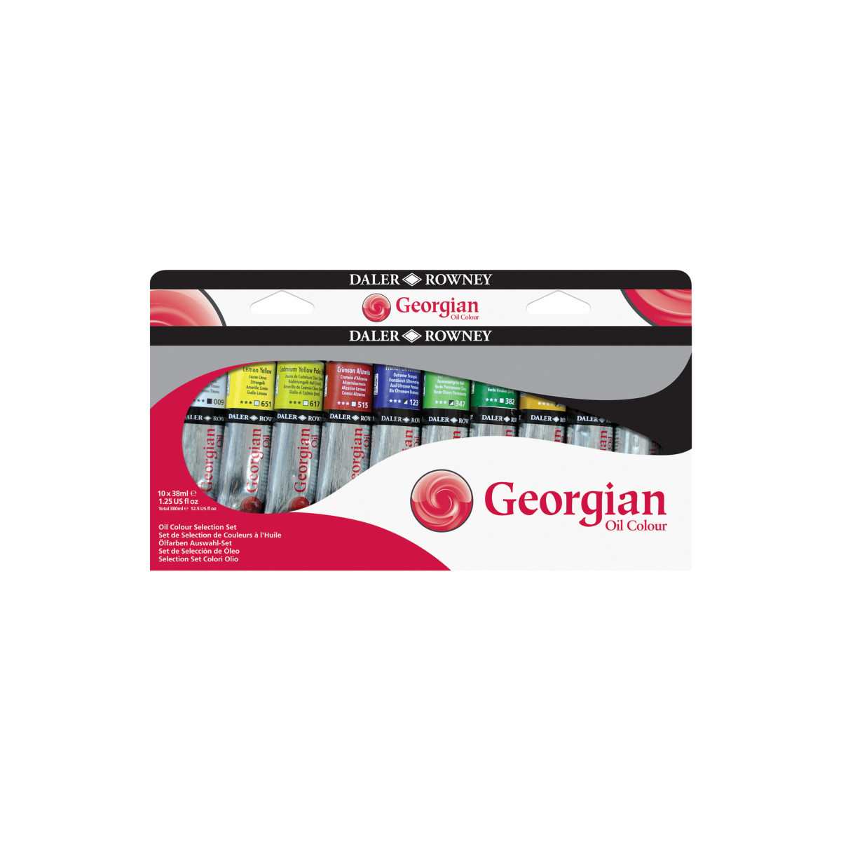 Since 1783, Daler-Rowney has inspired professional artists, art students and hobbyists to embrace their creativity. The Georgian oil paint line builds on Daler-Rowney's long history of creating world-class professional art supplies. Whether you're a professional artist, a beginner working on your oil painting techniques or somewhere in between, Georgian paints come in 58 colors to express your creative vision and create an ideal artists paint set for students and professional painters alike. Triple milled for perfection, Georgian oil paint is permanent, lightfast, and made with high-quality pigments that dry within 4-5 days. The milling process produces a paint that offers optimal performance, magnificent control, and a superior painting experience. Use this fast dry oil paint to capture a wide variety of effects, from detailed brush strokes to thick, impasto, palette knife techniques. Experiment with oil mediums to thin the paint for exquisite washes or use straight from the tube. Use these art paints as oil paint for canvas or on oil paper and capture your artistic vision. Georgian oil colors make quality and performance more accessible than ever. Each Georgian Oil Paint Selection Set includes 10 assorted colors, 38ml each.