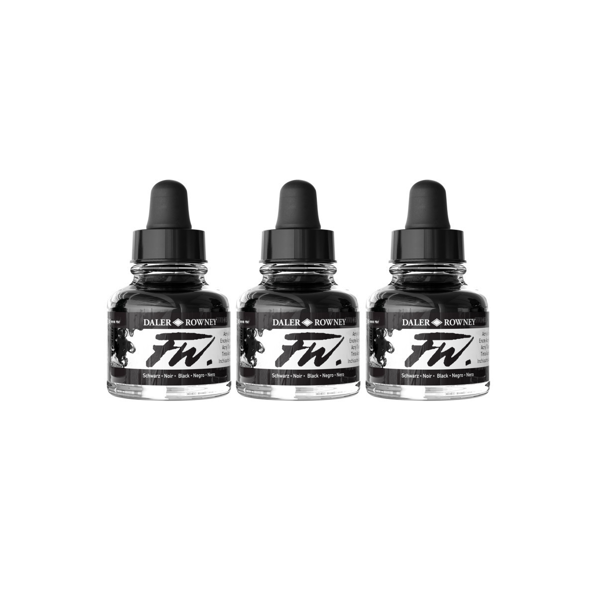 Daler-Rowney FW Acrylic Ink, Black, 29.5ml, Pack of 3