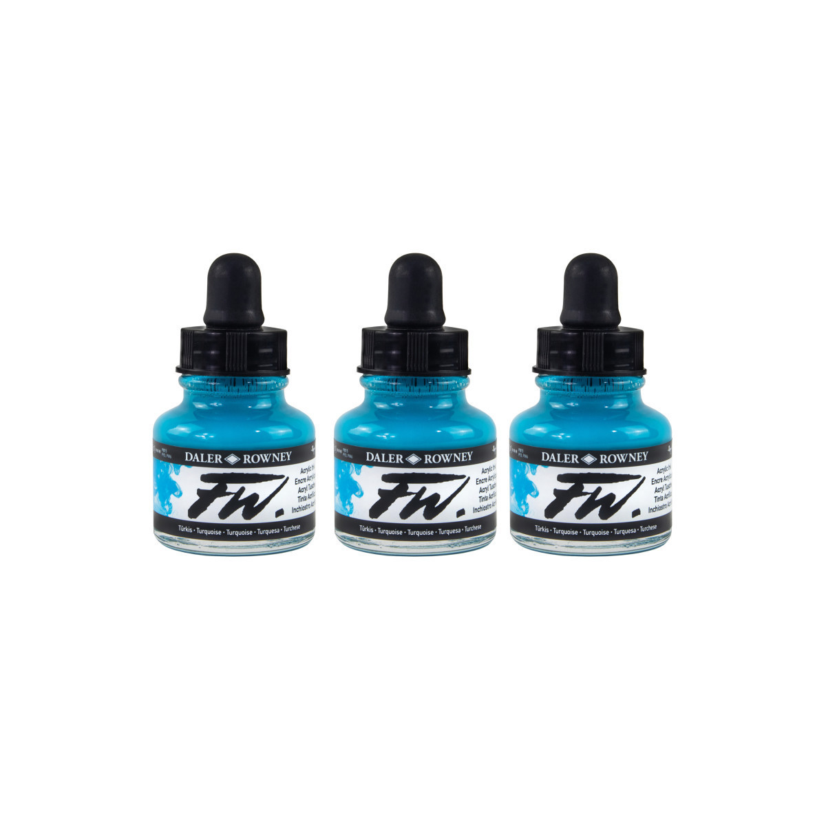 Daler-Rowney FW Acrylic Ink, Turquoise, 29.5ml, Pack of 3