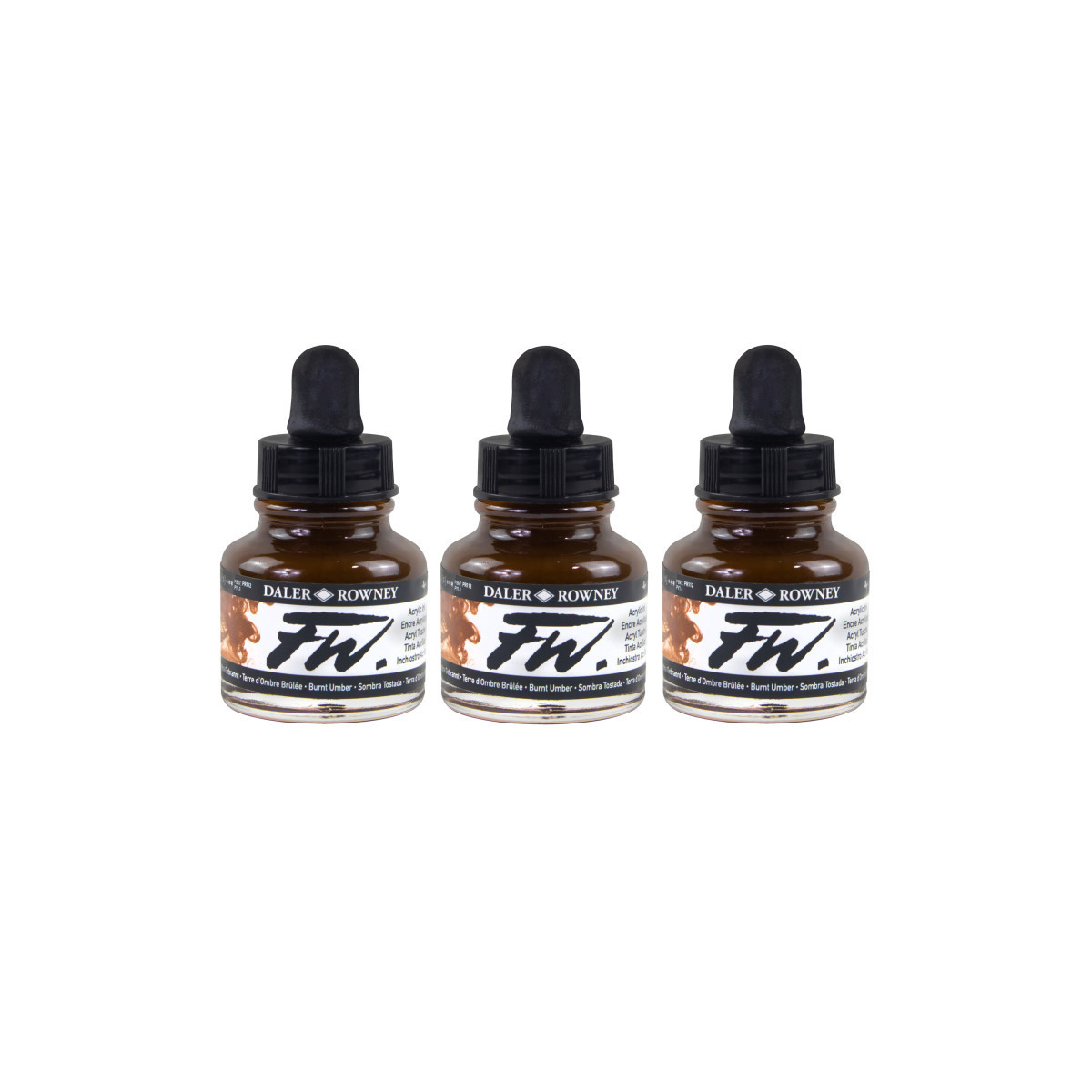 Daler-Rowney FW Acrylic Ink, Burnt Umber, 29.5ml, Pack of 3