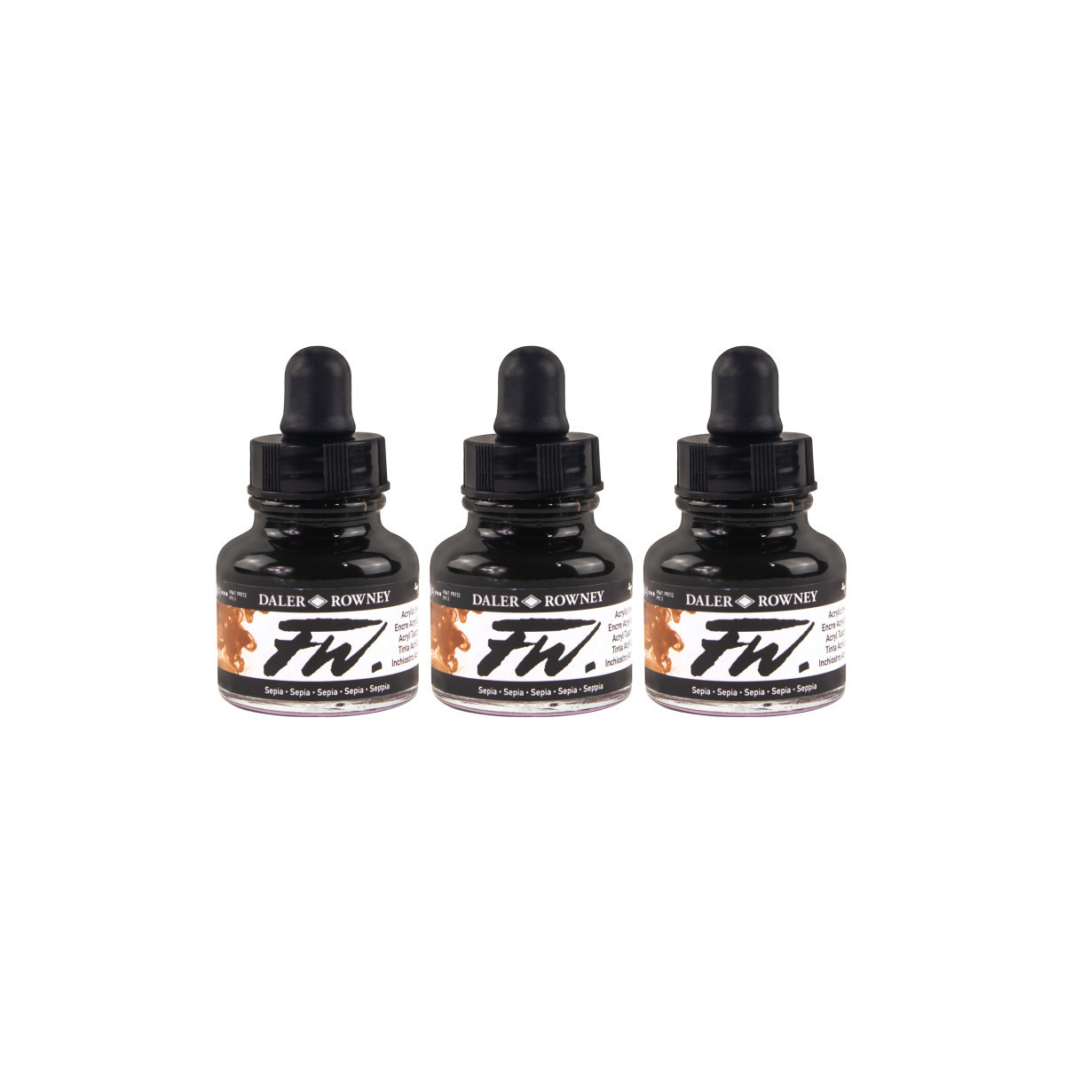 Daler-Rowney FW Acrylic Ink, Sepia, 29.5ml, Pack of 3