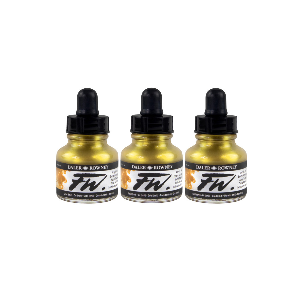 Daler-Rowney FW Acrylic Ink, Gold Imitation, 29.5ml, Pack of 3