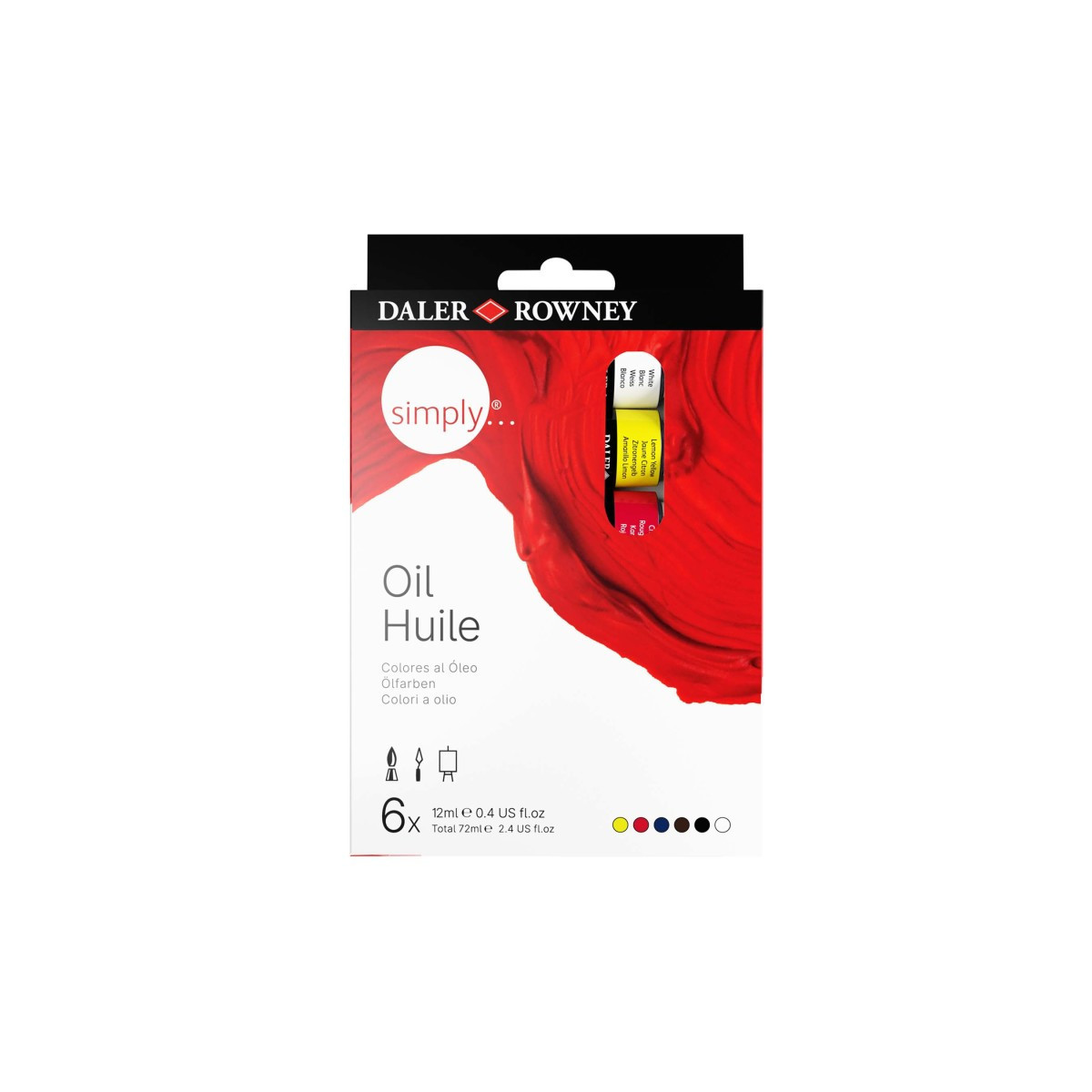 This Daler-Rowney Simply Oil Set contains 6x12ml of assorted Oil colors including White, Lemon Yellow, Crimson Red, Ultramarine Blue, Burnt Umber & Black. Daler-Rowney Simply Oil colors are a perfect starting point for artists & hobbyists looking to experiment with oil paints. These smooth colors can be used straight from the tube or thinned down to create glazes for a great, low price. Simply Oil offers great value for money, & together with other products from the Simply Oil range, an easy entry point for artists to begin working with oils.They offer high lightfastness (3*) & are made in the UK.