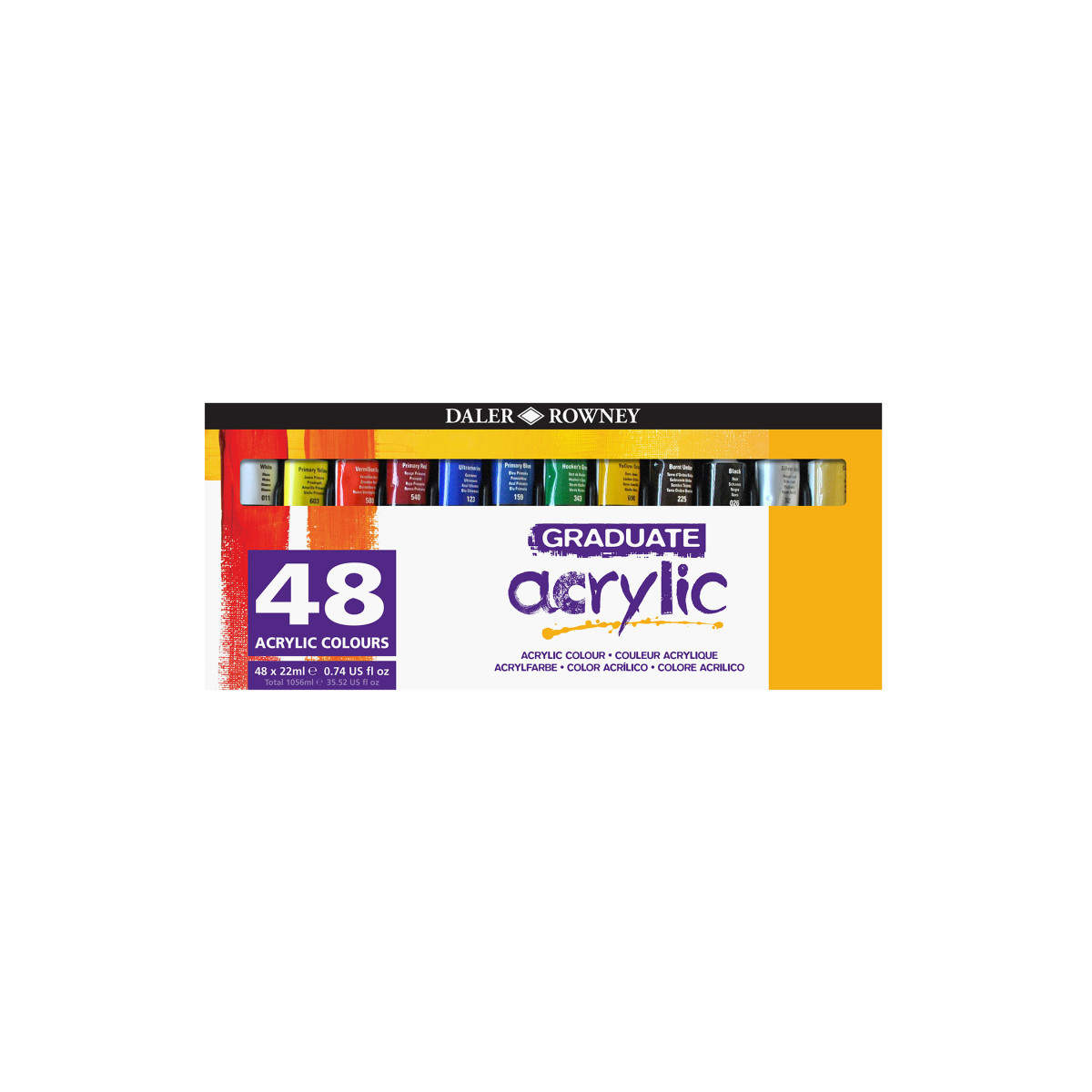 Daler-Rowney Graduate Acrylics offer an amazing variety of affordable colors that are vibrant & easy to use. Whether you're painting on paper, canvas, or a primed board, these paints work great indoors or outdoors. The water-based, solvent-free formula flows smoothly, making it perfect for quick, hassle-free projects. Plus, these paints dry fast, so your artwork can be stored away right after class, staying durable & flexible without any cracking. Since 1783, Daler-Rowney has inspired professional artists, art students & hobbyists to embrace their creativity. We believe in producing art supplies that are sustainable, qualitative, durable, accessible & affordable. The Graduate product line is a premier collaboration between three renowned art supply brands—Canson, Lyra, and Daler-Rowney—offering a comprehensive range of high-quality art materials. Featuring an array of supplies including sketchbooks, pencils, and paints, each product is designed to enhance technical skill and artistic expression. Ideal for art students and teachers alike, the Graduate range provides the tools necessary for fostering creativity in the classroom.