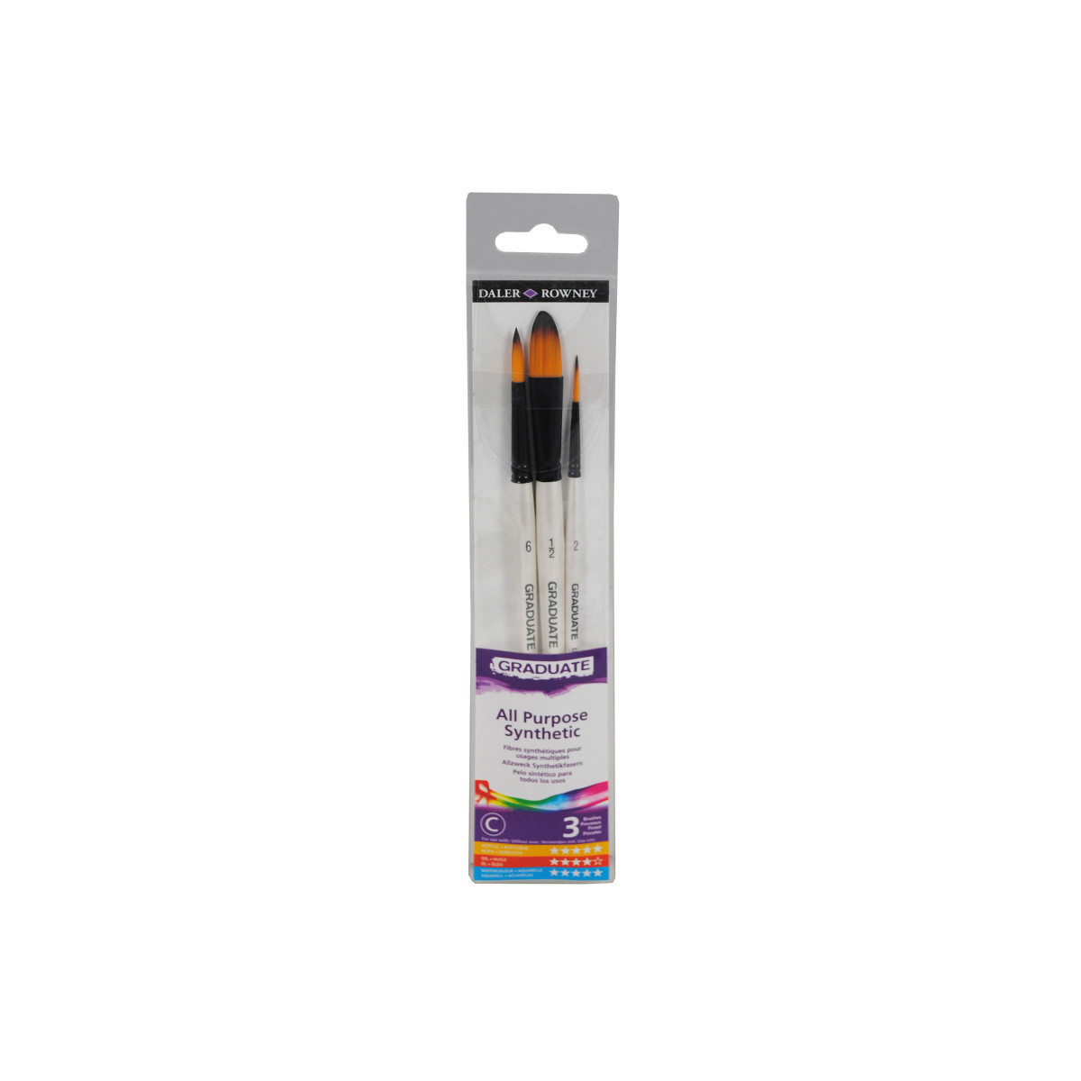 Daler-Rowney Graduate paintbrushes are an amazing choice for students & beginners, offering top-notch quality without breaking the bank. Made with durable synthetic bristles, these brushes hold their shape & give you precise control for smooth, even strokes. Plus, with a wide variety of brush types, you can easily explore different techniques & styles, making every painting session a creative adventure. Since 1783, Daler-Rowney has inspired professional artists, art students & hobbyists to embrace their creativity. We believe in producing art supplies that are sustainable, qualitative, durable, accessible & affordable. The Graduate product line is a premier collaboration between three renowned art supply brands—Canson, Lyra, and Daler-Rowney—offering a comprehensive range of high-quality art materials. Featuring an array of supplies including sketchbooks, pencils, and paints, each product is designed to enhance technical skill and artistic expression. Ideal for art students and teachers alike, the Graduate range provides the tools necessary for fostering creativity in the classroom. Short handle brushes include Round Size 6, Rigger Size 2 & Oval Wash Size 1/2in.