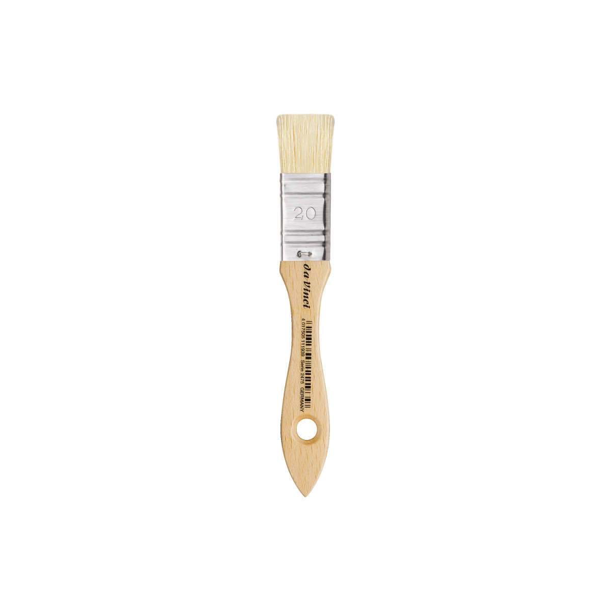 da Vinci varnish & priming mottler brush with extra short hog bristle and natural lacquered handle is made for the demands of oil and acrylic painting. Professional quality hog bristle produces a controlled stiff stroke which is great for blocking out large areas of paint. The bristle is set by hand, not cut therefore brush retains its natural flags or split ends for even paint distribution. This series is ideal for priming, gesso, underpainting, varnishing, graining and transparent painting with great control.