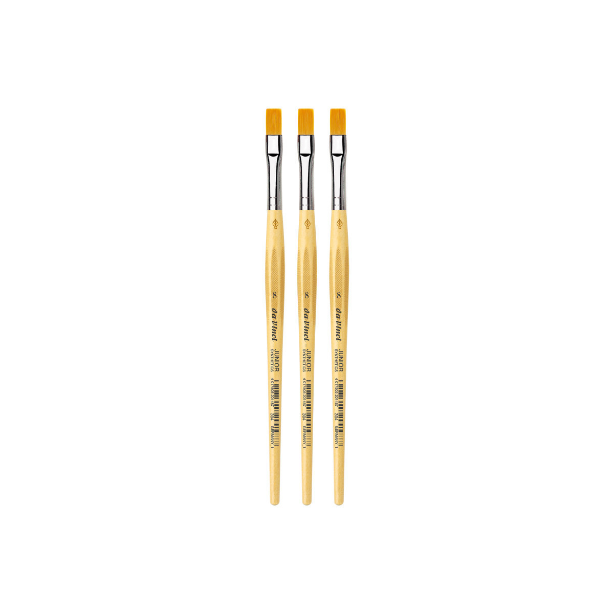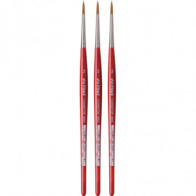 da Vinci Junior art brushes are a well built, easy to use brush developed to improve the quality of brushes for beginners. They can be used with any type of paint and are easy to clean. The "hold it like a pencil" handle shape makes for a comfortable and familiar grip. The brush won't roll away if dropped. It has a reinforced brush head for heavy wear that will always hold its edge. Unlike most cheaper brushes, da Vinci junior features a "rust resistant" seamless polished ferrule. Made in Germany. Sustainable wood handles. Vegan. Eco-Friendly. Sold as a pack of 3.