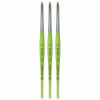 Thanks to a specifically developed, flexible, grey synthetic fiber we have created a hobby and school painting brush, which fascinates not only by its interesting look but also by its attractive price. This innovative product offers better performance than the traditional school brush with natural hair when it comes to stroke control and color absorbing capacity. The brush features a green, matte handle with seamless, rust-proof aluminum ferrules. Made in Germany. 100% Vegan. Sold as a pack of 3.