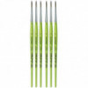 Thanks to a specifically developed, flexible, grey synthetic fiber we have created a hobby and school painting brush, which fascinates not only by its interesting look but also by its attractive price. This innovative product offers better performance than the traditional school brush with natural hair when it comes to stroke control and color absorbing capacity. The brush features a green, matte handle with seamless, rust-proof aluminum ferrules. Made in Germany. 100% Vegan. Sold as a pack of 6.