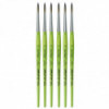 Thanks to a specifically developed, flexible, grey synthetic fiber we have created a hobby and school painting brush, which fascinates not only by its interesting look but also by its attractive price. This innovative product offers better performance than the traditional school brush with natural hair when it comes to stroke control and color absorbing capacity. The brush features a green, matte handle with seamless, rust-proof aluminum ferrules. Made in Germany. 100% Vegan. Sold as a pack of 6.