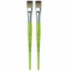 Thanks to a specifically developed, flexible, grey synthetic fiber we have created a hobby and school painting brush, which fascinates not only by its interesting look but also by its attractive price. This innovative product offers better performance than the traditional school brush with natural hair when it comes to stroke control and color absorbing capacity. The brush features a green, matte handle with seamless, rust-proof aluminum ferrules. Made in Germany. 100% Vegan. Sold as a pack of 2.