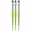 Thanks to a specifically developed, flexible, grey synthetic fiber we have created a hobby and school painting brush, which fascinates not only by its interesting look but also by its attractive price. This innovative product offers better performance than the traditional school brush with natural hair when it comes to stroke control and color absorbing capacity. The brush features a green, matte handle with seamless, rust-proof aluminum ferrules. Made in Germany. 100% Vegan. Sold as a pack of 3.