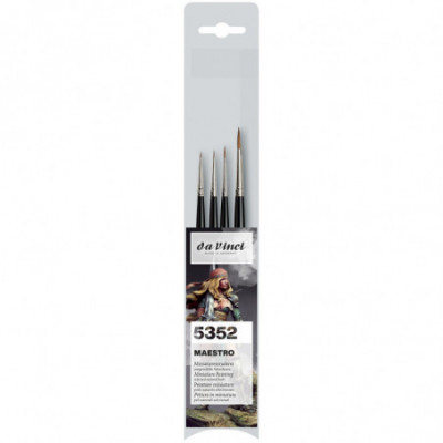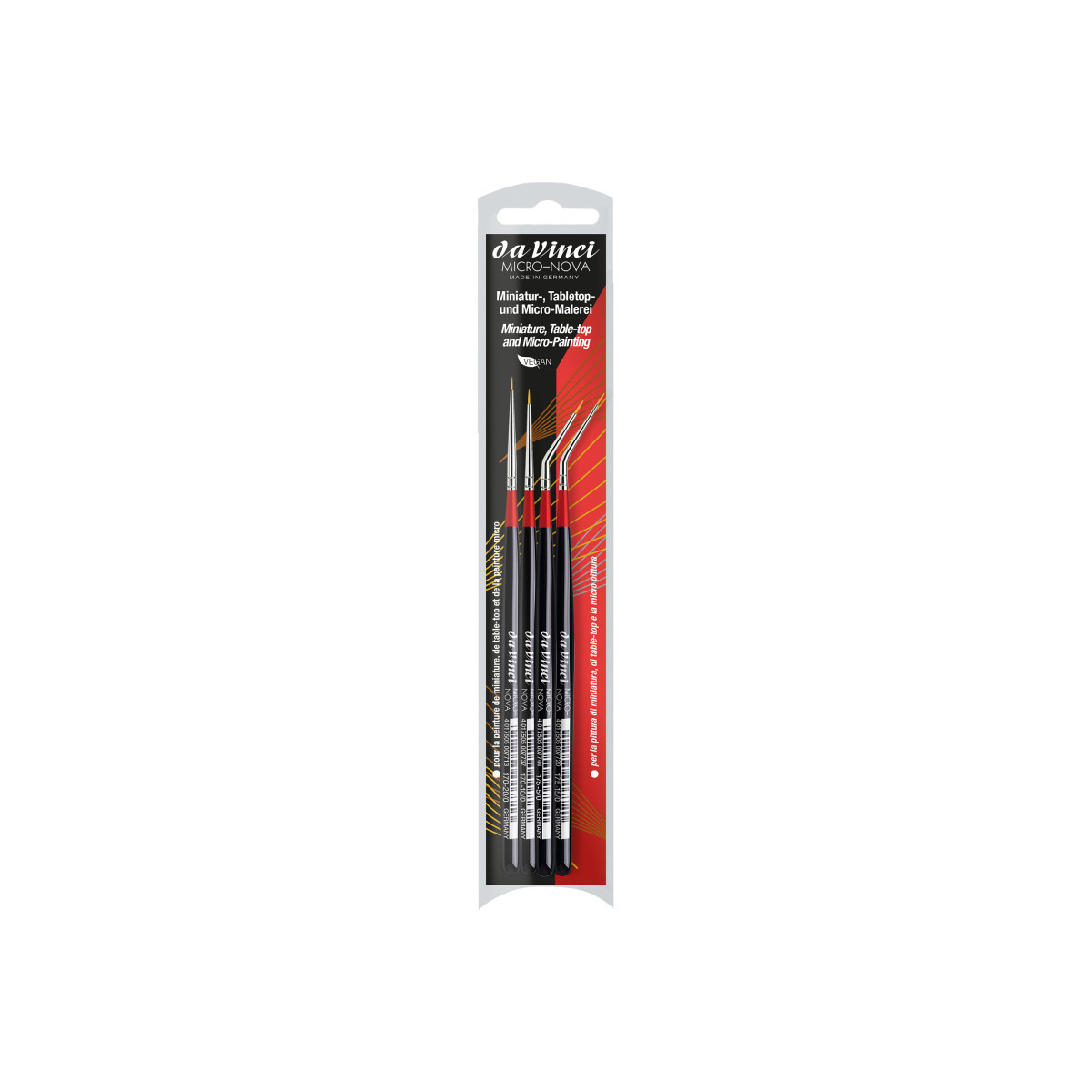 The da Vinci MICRO-NOVA has a very short handle format that will not roll away for precision painting, retouch, modeling, restoration or spot painting. This line of brushes features NOVA Synthetic fibers that work well with all types of paint. Certified green manufacturing with sustainable wood handles handmade in Germany at our family owned factory since 1890. 100% Vegan. This set includes: Series 170 Size -20 and -10 as well as Series 175 Size -15 and -5.