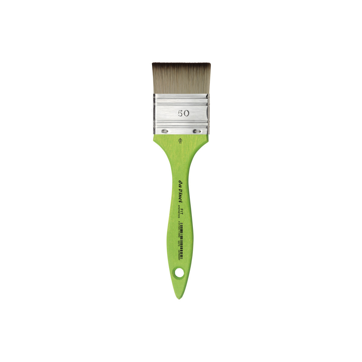 Thanks to a specifically developed, flexible, grey synthetic fiber we have created a hobby and school painting brush, which fascinates not only by its interesting look but also by its attractive price. This innovative product offers better performance than the traditional school brush with natural hair when it comes to stroke control and color absorbing capacity. Thanks to the DUROPLUS technique this mottler is especially long-lasting. The brush features a green, matte handle with seamless, rust-proof aluminum ferrules. Made in Germany. 100% Vegan.