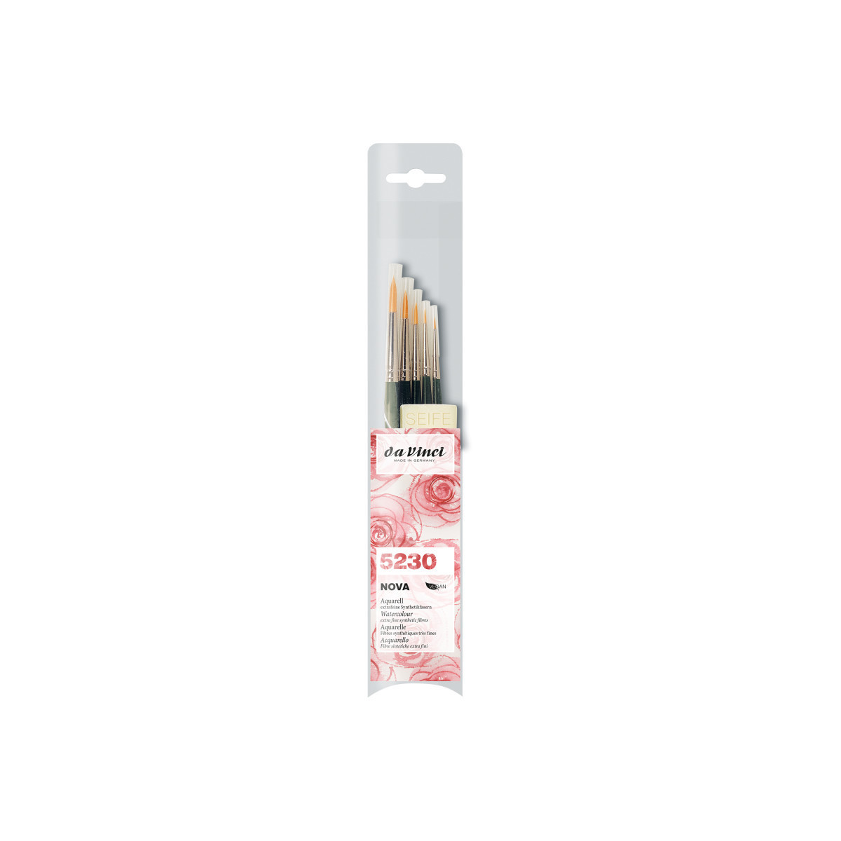 NOVA golden synthetic brushes for all paints & painting techniques - in many different shapes. This line has been one of our best-seller for decades. Our well-known mix of synthetic fibers of 3 different diameters with a high color absorbing capacity for smooth and even strokes. Certified green manufacturing with sustainable wood handles handmade in Germany at our family owned factory since 1890. 100% Vegan. This set contains: Series 1570 Size -3, 0, 2, 4 and 6.